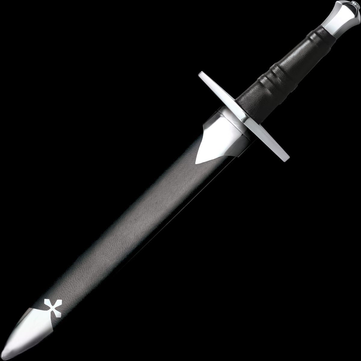Scaled down in size and almost identical in appearance, it offers a 13" long blade designed to cut and thrust, yet be sturdy enough to stand in for a buckler in defensive roles. Every Hand-and-a-Half Sword and companion dagger reflects the highest standards in workmanship and materials and comes fully sharpened. To safely house their keen blades we have also included very attractive scabbards made of wood covered with black leather with a steel throat and chape.