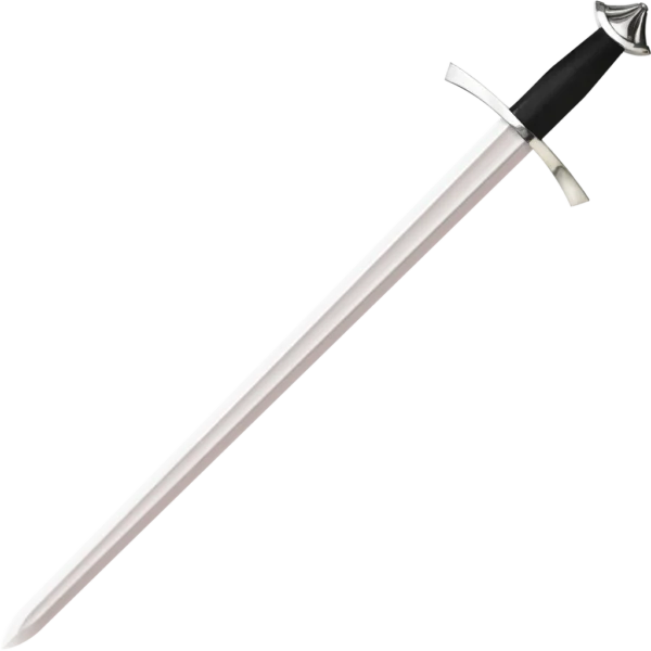 The Norman desire for land and treasure can, like their famous sword, be undoubtedly traced to their Viking forefathers who wrenched their homeland in northwestern France from the hands of Charles the Simple in the Treaty of Saint-Clair-sur-Epte in 911 AD. Never satisfied with their lot, it wasn't long before they once again took up their broad, double-edged swords and set sail across the English Channel to conquer Britian most famously, at the Battle of Hastings in 1066 AD. Now Cold Steel is pleased to offer you a version of this famous sword. Like the originals, it offers a long wide blade with sharp edges and a very useful point. To ensure it's light enough to be easily wielded with one hand, Cold Steel added a single broad fuller in the center of the blade that serves to reduce weight, improve balance and add the stiffness needed to withstand heavy blows. The hilt of the Norman Sword is also reminiscent of many surviving originals with upturned, spatulated quillons, leather-over-wood grip, and a modified "cocked hat" pommel. This pommel shape was specially chosen because it allows more room for the hand while counter-balancing the blade.