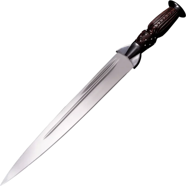 - The attractive Rosewood handle is capped with a contrasting blued-steel guard, bolster and disc-shaped pommel