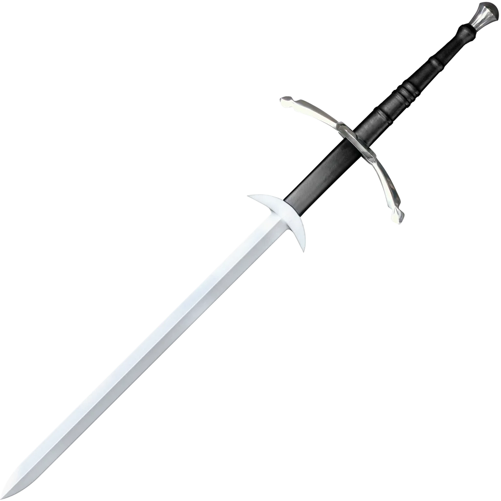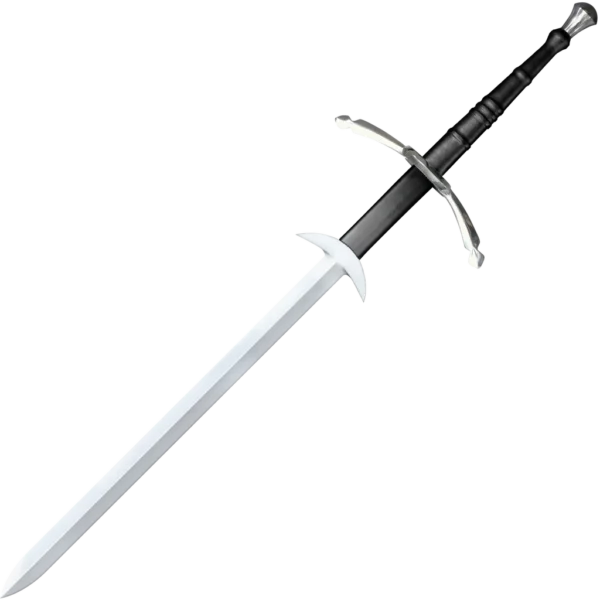 Our Two Handed Great Sword is the biggest sword we make. But don't let its size fool you, as there is nothing awkward or clumsy about this awesome sword. Sure it's big, but it's extremely well balanced and easily wielded by people of larger stature and physical strength – Weighing in at 6 lbs. 13.5 oz. with a 39 7/8" high carbon steel blade! To protect the hands from opposing weapons, it features a large guard with side rings plus integral parrying hooks that allow the blade to be shortened for closer range techniques. The handle is made of wood and covered with leather and is extra long to afford a full two handed grip. What's more, it's capped by a heavy steel pommel that helps counter balance its long blade. If you're looking for the ultimate in big performance oriented swords, your search is over.