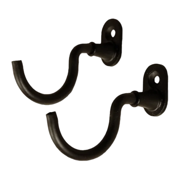 These steel katana hangers from Hanwei provide an economical and sturdy solution for displaying any Japanese-style sword on a wall. Supplied in pairs, with a black powder-coated finish, the hangers can be arranged to display the sword either horizontally or at an angle. They are supplied with mounting screws (wall board or sheet rock mounting will also require wall anchors). The hooks of the hangers are plastic-covered, to avoid damage to saya finishes. Simple and unobtrusive, these hangers are designed to focus attention on the sword being displayed.
