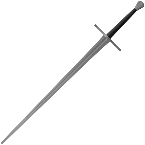 The Blunt Trainer longsword features nearly identical handling of its sharp companion, but with thick edges (2mm) and a rounded tip for safe sparring practice. Tinker Pearce has developed these matching longswords to satisfy the need of every Western Martial Arts practitioner and sword enthusiast, to have a matching set of sharp and blunt swords for cutting and safe training practice. The swords meet Tinker`s exacting quality requirements and are built in much the same way as his custom pieces. Each blade is forged from 5160 Spring Steel, Marquenched to the desired hardness of 50-53 Hrc while the tang is drawn back to the low 30s Hrc. The very end of the tang is threaded to fit an allen nut recessed into the pommel which allows for dimantling of the hilt assembly for inspection or to exchange blades if needed.