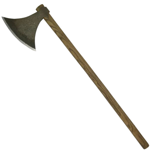 Varying greatly in size, from small throwing axes to the mighty Danish Axe, these were the most commonly used weapons/agricultural tools of Nordic warriors. The Hanwei replica axes feature forged carbon steel heads with sharp tempered edges and hardwood shafts all given a beautiful antiqued finish. Shafts measure approximately 30.5" long and are tapered for a slip secure head fit. This Historically accurate and fully functional Viking axe weighs approx 4 lbs 8 oz.