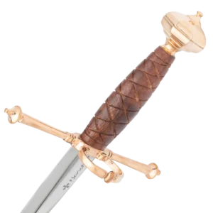 The Honshu Historic Forge Italian Dagger is a unique and captivating piece that transports you to the realm of Italian history. Crafted with meticulous attention to detail, this dagger features an authentic Italian design, making it a must-have for historical enthusiasts, collectors, and martial arts practitioners. With a 12" Carbon Steel Blade, this dagger exhibits exceptional precision and durability. The blade's construction ensures its reliability in various applications, while the Rockwell Hardness HRC 47-52 rating guarantees its exceptional performance. The wooden handle of the dagger is adorned with crosshatching, providing a secure grip and enhancing control during use. To ensure the dagger's preservation and elegant presentation, it comes with a leather sheath. The sheath features gold colored accents on the throat and tip, adding a touch of opulence to the overall design. This sheath not only protects the dagger but also allows for convenient storage and easy transport.