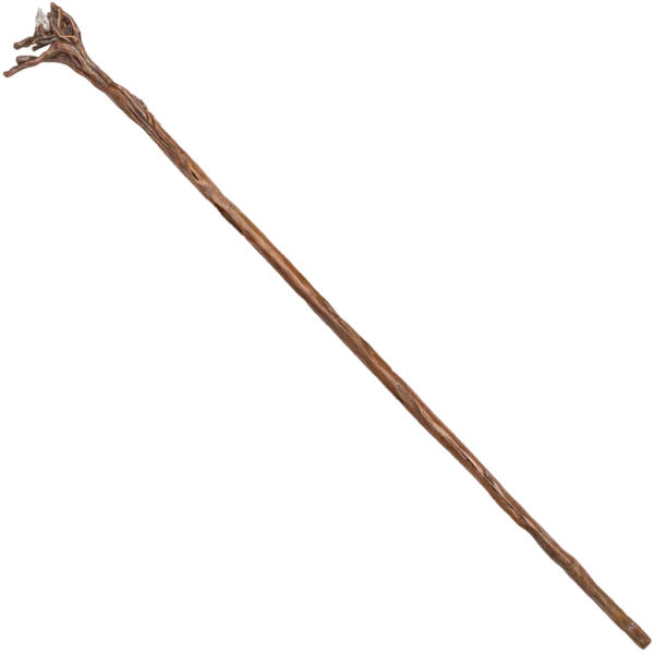 The staff of the Wizard Gandalf the Grey was a very powerful talisman and tool with which to exercise his enormous powers. After Gandalf’s Pipe Staff was taken from him by the wizard Saruman when he was imprisoned in Orthanc, he aquired a new staff in Rivendell after his escape. This long, wood staff had a crown of twisted root branches and runes carved into the sides. When the Fellowship of the Ring needed a light to find their way in the dark Mines of Moria, Gandalf set an illuminated magic crystal into its crown. It was there in depths of Middle-earth that Gandalf encountered Durin’s Bane, the great Balrog of Moria. Gandalf channeled his power through his staff to protect his companions against the flaming beast, using it to break the bridge in Khazad-dûm! This authentically detailed polyresin replica is a reproduction of an actual prop built by the THE LORD OF THE RINGS: THE FELLOWSHIP OF THE RING™ Art Department. The staff is 66" tall, featuring finely cast details and authentic