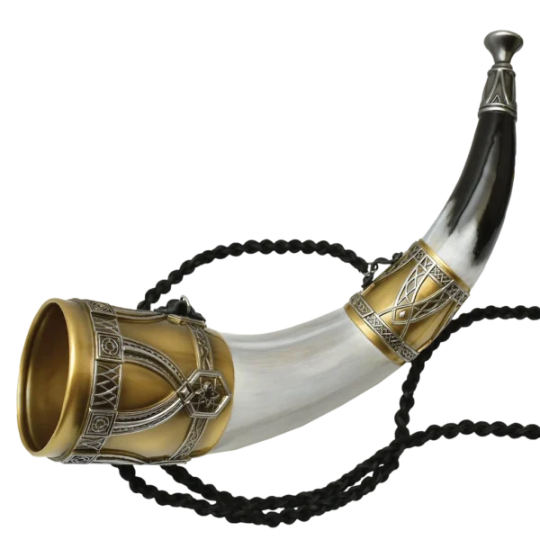 This authentically detailed replica is a reproduction of the actual filming prop built by Weta Workshop and used in The Lord Of The Rings films presented by New Line Cinema. The horn is crafted of polyresin and genuine leather, with precisely-molded details and coloring. It is presented with a polystone wall display, sculpted with the Tree of Gondor motif and 62" genuine leather shouldre strap. It includes a certificate of authenticity.