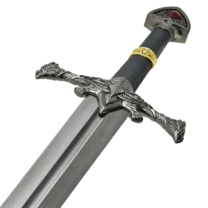 Carried by Aegon the Conqueror when he first left Dragonstone for the Seven Kingdoms , Blackfyre was an ancestral sword of his house that became a symbol of the Targaryen dynasty in Westeros. Aegon I carried it throughout his reign and used it in many battles, upon his death it was passed on to his heir and successor Aenys. However Aenys gifted it to his younger brother Maegor who was the better warrior and more suited to the blade. Many viewed this as a mistake that legitimized Maegor’s later usurpation of the throne. The sword continued to be used and carried by the Targaryen kings for generations, in peace and in war. Until 182 AC when Aegon IV gifted Blackfyre to his bastard son Daemon, instead of his more scholarly legitimate heir. Daemon took on the name Blackfyre, after his father’s blade, and formed House Blackfyre. The waters of succession were further muddied when Aegon IV legitimized Daemon Blackfyre on his deathbed. The final result was The Blackfyre Rebellion in 196 AC. The rebellion proved unsuccessful and Daemon was slain, riddled with arrows from archers under the command of Lord Brynden Rivers, himself another bastard of Aegon IV who stayed loyal to the crown. Daemon Blackfyre’s half brother, Aegor “Bittersteel” Rivers, a bastard who had joined with the rebels took up Blackfyre and fled with it across the Narrow Sea to the Free Cities where the sword was lost to history. The Valyrian Steel Collection is a series of weapons and arms created from the fantasy world of author George R.R. martin's best selling book series "A Song of Ice and Fire". Each limited edition entry in this collection is made of only the highest quality materials available with special attention made to the finish and detailing.