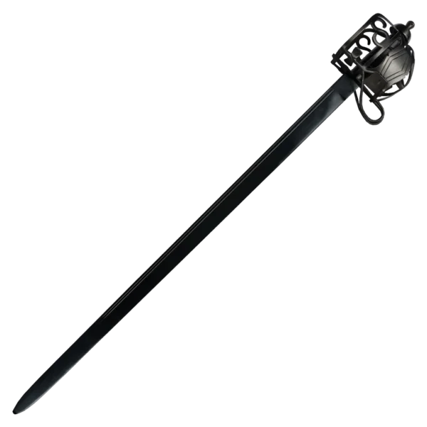 This is a replica of a Highland Basket Hilt Sword. The basket hilted sword is a type of sword from the early modern era characterised by the basket-shaped guard that protects the hand. The basket hilt is a development of the quillons added to swords crossguards since the Late Middle Ages. It is often referred to as a broadsword too. The basket-hilted sword was generally used as a military sword, in contrast with the rapier, the slim duelling sword worn with civilian dress during the same period, although each did find some use in both military and civilian contexts.