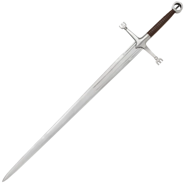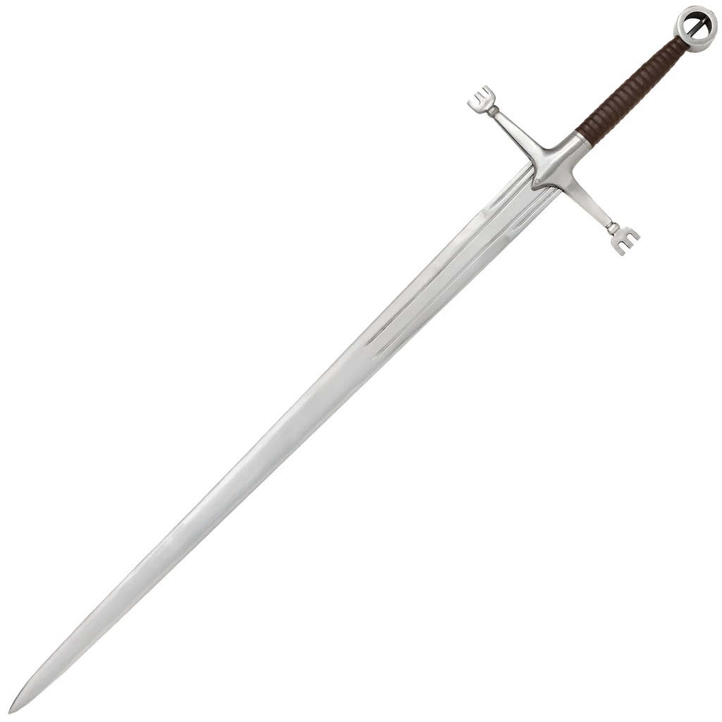 This is the John Barnett Gallowglasss Museum Quality Sword, it is an Irish Gallowglass two-handed sword which has been hand made in museum quality. In Ireland the warrior elite were known as Gallowglass, these men fought on foot wearing chain mail jerkins, helmets , gauntlets and large two-handed swords. The large two-handed sword of the Gallowglass had a long, broad double-edged blade and the guard was of cruciform type often with a cut out "E" shape or some other detail on each guard end.