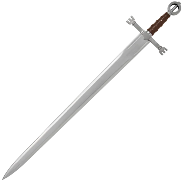 The museum quality short sword was utilised by mercenaries and other warriors in Ireland throughout the 15th Century. It was the perfect close quarter weapon as they were lighter and easier to handle than lumbering claymores and could be easily drawn in tight spaces. This style of short sword has the significant hollow ring pommel and ‘E’ accents that are only found on swords of Irish origin.