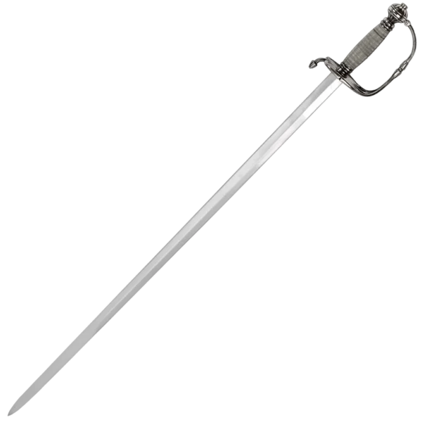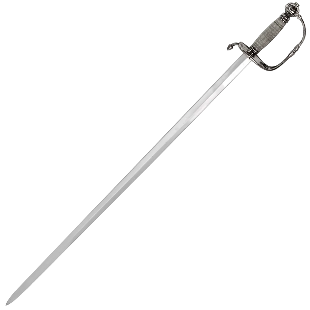 This is a replica of a late 17th-century Replica English Ceremonial short sword, it is of musuem quality made by John Barnett. The high quality blade is hand forged using EN45 Spring steel to make the blade non brittle and give it a spring like quality that will not warp. It is most likely that the small sword originated in the courts of Louis XIV of France where it was worn instead of the rapier. It was also realised that in a duel between swordsmen of equal skill the man with the lighter weapon would have an advantage over his opponent. After the restoration of Charles II the small sword appears in England and as swords were worn by gentlemen as part of their everyday costume, small swords were more convenient to wear as oppose to rapiers. The small sword developed over the following century employing a variety of different blade styles, hilts and method of decoration, but in essence, a typical small sword had a small pommel, slim grip over a shell guard. A knuckle bow protected the fingers and often there were a pair of finger-rings just above the shell guard for extra grip. The blade was narrow, double-edged or triangular in section and hollow ground blades were considered the best, not only for their strength but for the lightness they imparted.
