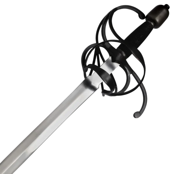 - This Black Hilted Rapier features a black powder-coated complex swept hilt and a ergonomic wire wrapped grip.